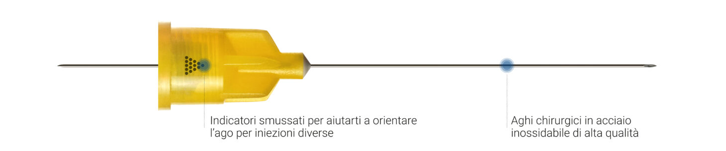 e misura stampati direttamente sull’ago per una veloce identificazione.